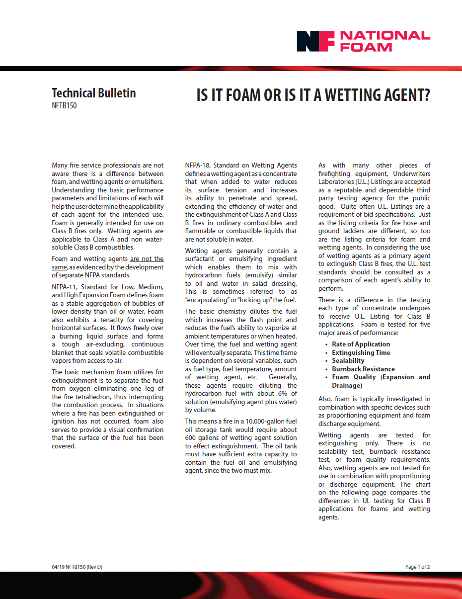 Foam or Wetting Agent? Foam Concentrates Sep 9 Written By Sia Petrova Download MunicipalTrainingFire TruckWildland/StructuralClass B Fuel Tank Spills Sia Petrova